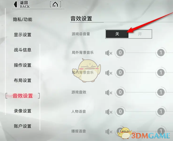 4、不想设置音效的玩家,直接将游戏总音量选择关闭即可;