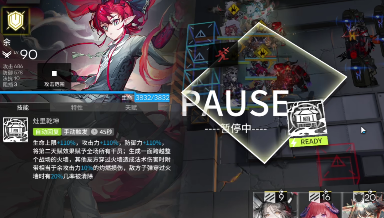 余的第一天赋是,在阻挡敌人的期间,一技能的生命值提升上限会增加,不止如此,余还会使得自己阻挡的目标,受到额外的法术伤害以及灼烧dot伤害,余的第二天赋是当在场干员全部存活时,可以每秒钟的恢复干员的血量以及元素数值。