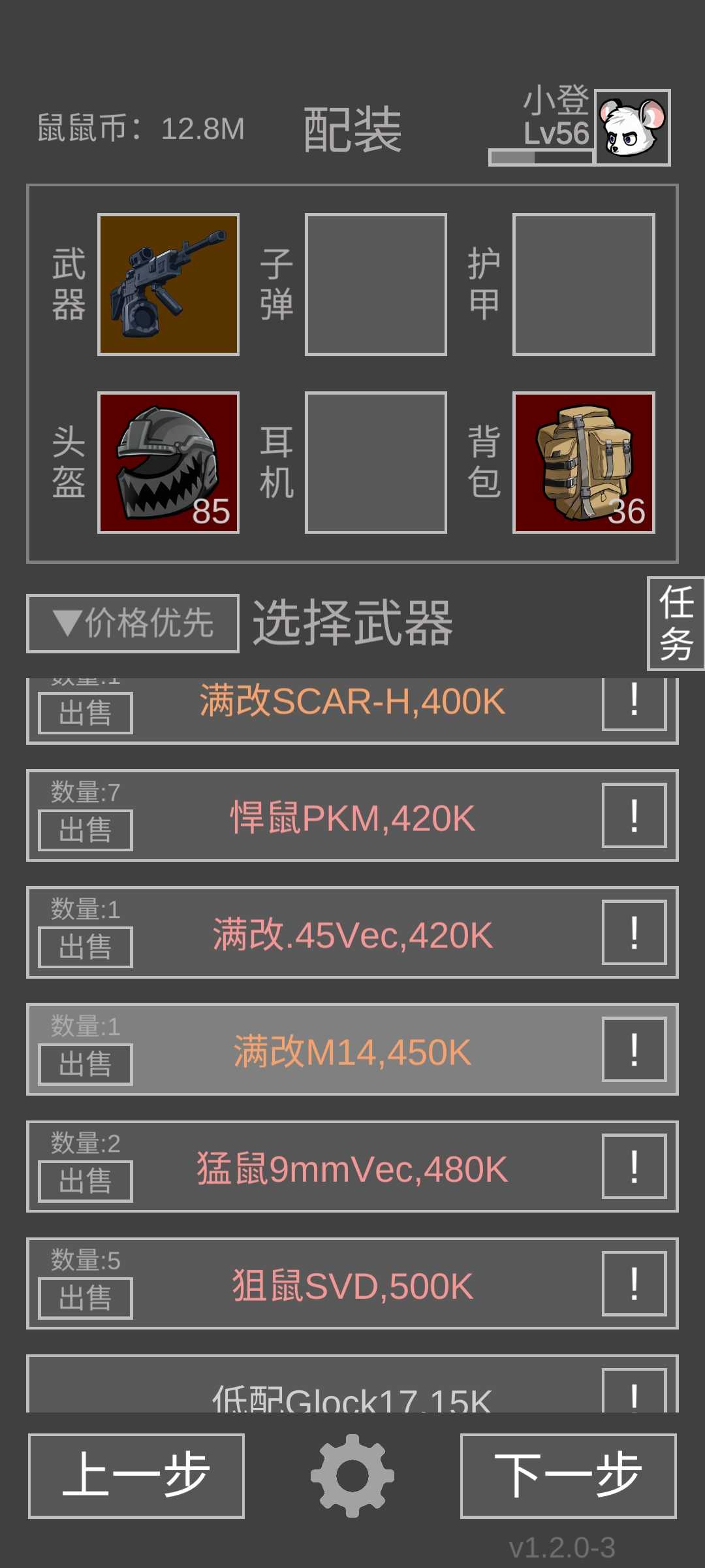 带队友的打法更加适合没有解锁六级弹的玩家。带一个前排队友,这个队友装备没太大要求甚至是个紫色的半装鼠都行,总之是个能抗几枪的小黑奴就行。武器带个.45vector(我相信你有缴获的vector)子弹用达姆弹甲,带个五级全防甲(悍鼠四级弹,以及猛鼠瞄腹部),甚至不带甲都行前提是小黑奴抗得住。打的时候建议用自定义准星打腿,把命中率拉的越高越好,注意腹部命中率要低,猛鼠护卫会有五级全防甲,以及悍鼠是六级全防甲。