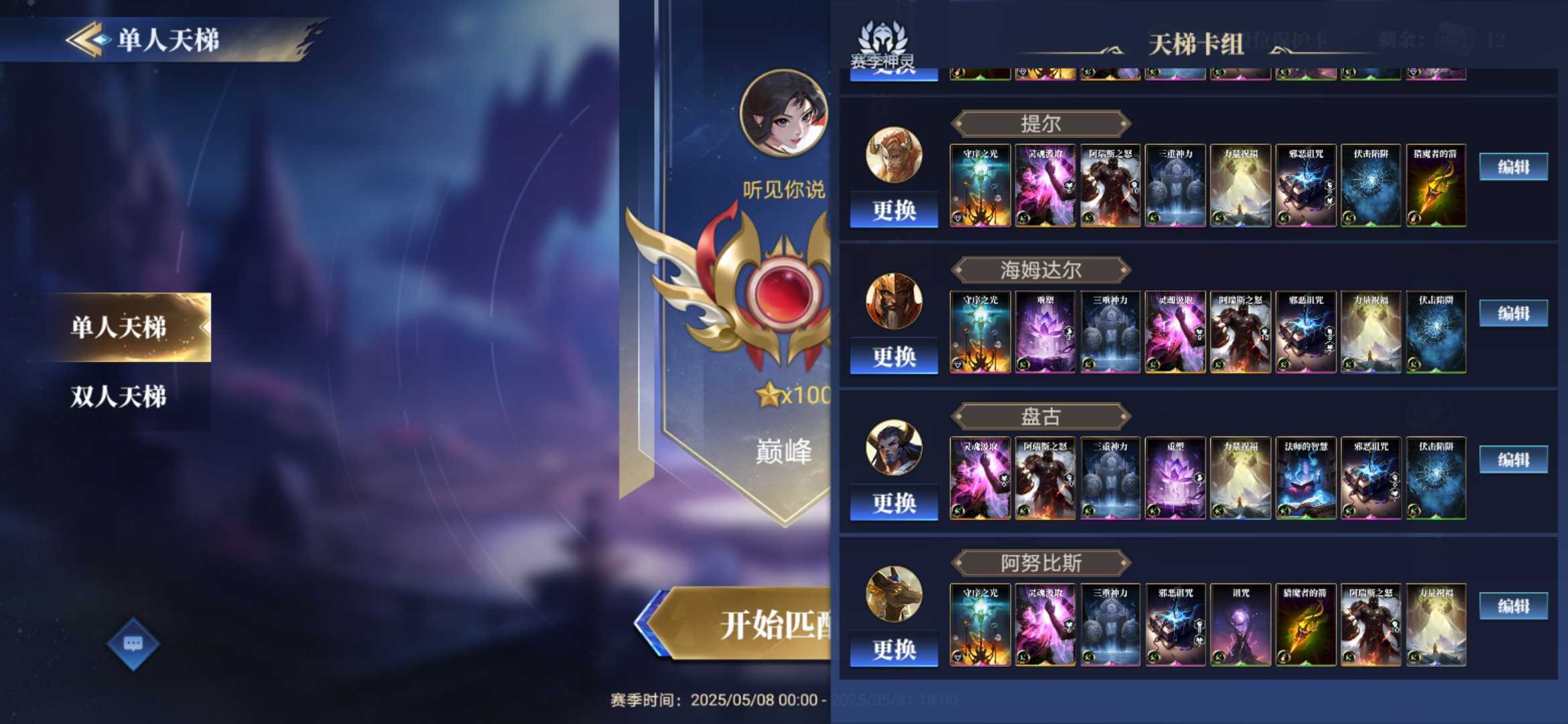 目前150场胜率在70左右(构筑流派和英雄如图)