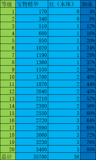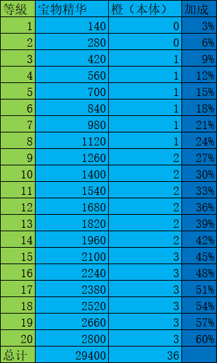 2、宝物进阶消耗图表