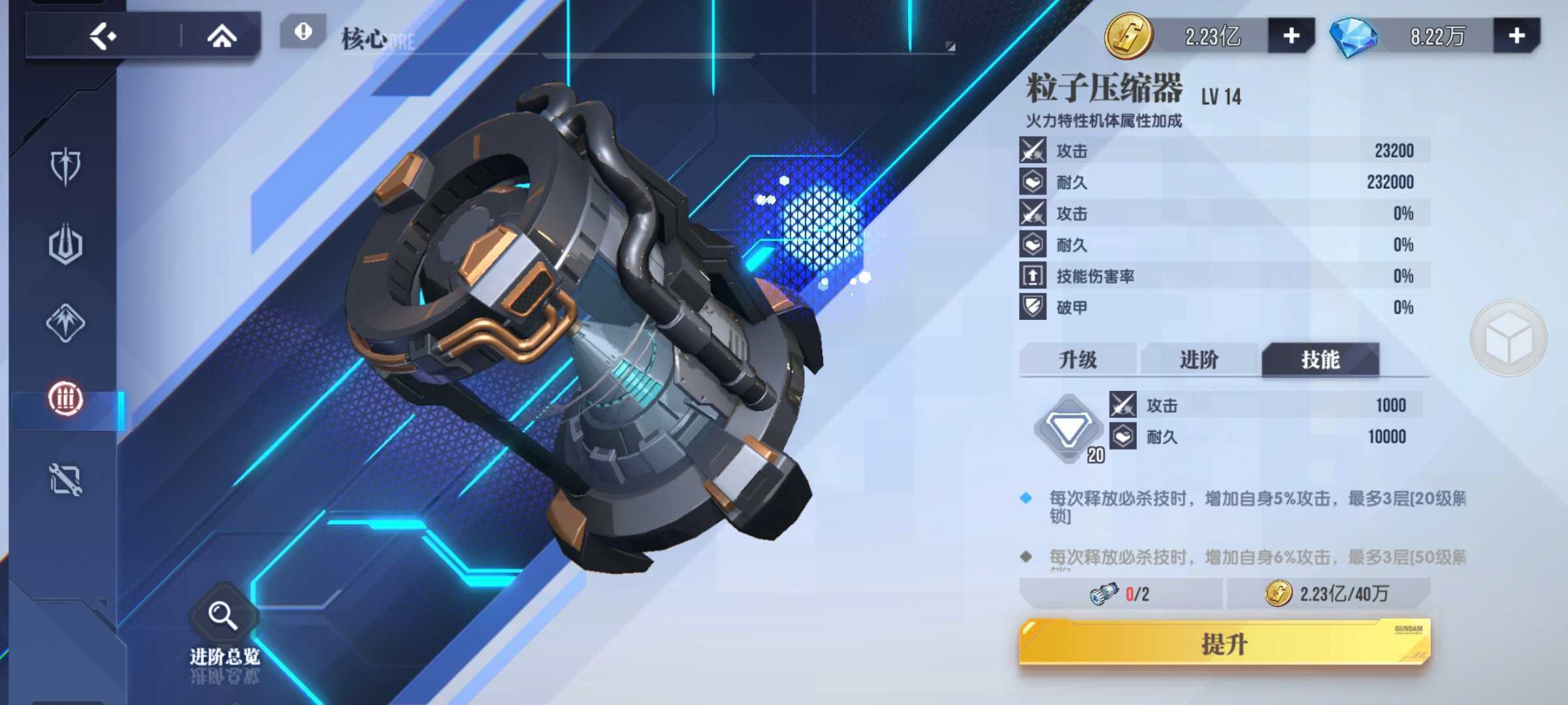 2、进阶是百分比属性和特殊属性的提升,资源非常紧张,希望官方后续补充这方面资源的获取,现在感觉是根本升不动,目前获取有限的进阶资源,有seed自由高阶的,建议集中给强袭。没有的建议集中升浮游系的,因为权天使是平民玩家能用的不输于seed自由的杀boss神机,资源获取杀boss是很重要的,必须要有限考虑怎么输出最大化。