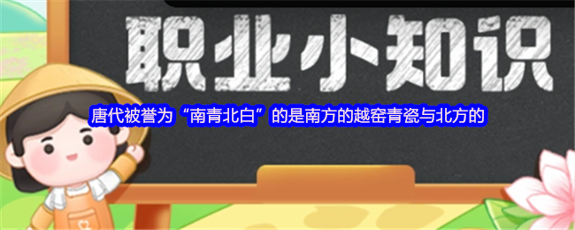 唐代被誉为“南青北白”的是南方的越窑青瓷与北方的?这是支付宝蚂蚁新村2025年5月20日题目,每天在蚂蚁新村答题,不仅能学到有趣的职业小知识,还能提高木兰币的产速,帮助小镇建设。今天正确答案是【邢窑白