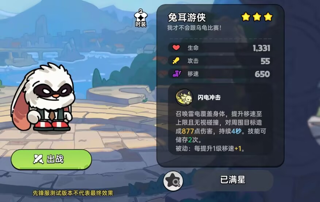 兔耳游侠虽然有极高的移动速度,但本体是十分脆弱的,碰到贴脸瞬间控制的角色会十分危险。同时作为PVE角色,他的被动虽然有移速加成,但是攻击力相对其他角色而言较弱。