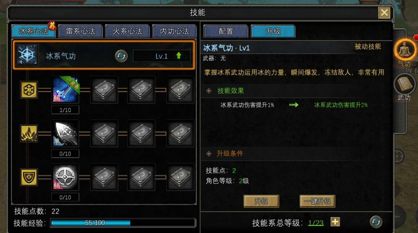 前期装备以有什么就用什么为主,不用过于追求,待等级高后解锁了后续的玩法可以慢慢地去刷。在心法的选择上,可以选择游戏所推荐的冰系,该类型的心法对弓箭手的加成很大,也很适合多种练级环境,在大部分副本中也有着优异的表现。