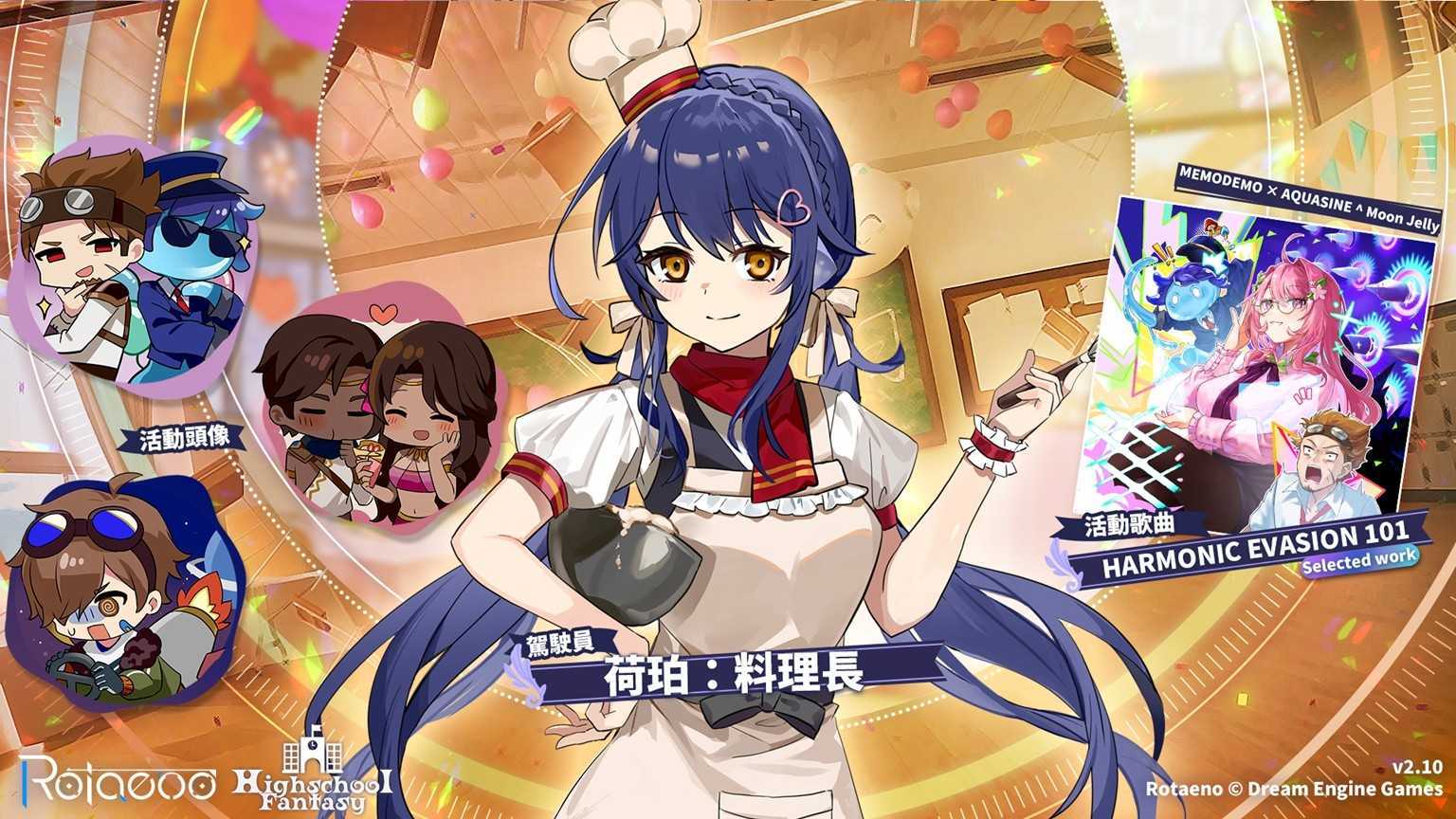 只要在5月30日至6月22日期间参与学园祭限时活动,玩家还可免费获取活动专属歌曲「HARMONIC EVASION 101 by: MEMODEMO × AQUASINE ^ Moon Jelly」、限定驾驶员皮肤「荷珀:料理服」,另有精美的限定头像等待着大家!