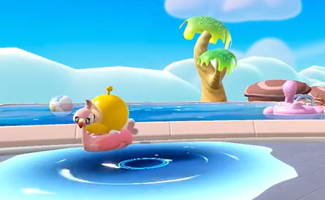 不过,甜甜雀不仅仅在伤害输出上有强大表现,它的糖果加成系统也让它和一些其他艾比可以搭配得非常好。就比如,你可以和鹿波波一起组队,通过叠加糖果层数提升攻击能力,甚至可以带上薄荷蛤蜊来进一步增加糖果层数,这样的搭配可以让你在战斗中造成惊人的伤害。关键是,甜甜雀也有着自己的个性互动动作,想象一下它变成游泳圈和小蛋仔一起在水中漂荡,或者一边跳优雅的华尔兹,一边在战斗中为你贡献强力的弹射攻击,简直是战斗与萌力兼备。