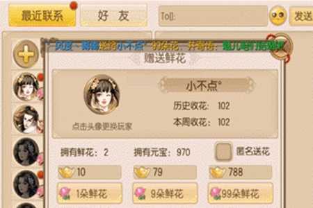 2、接下来向他频赠送鲜花以增加好感度。