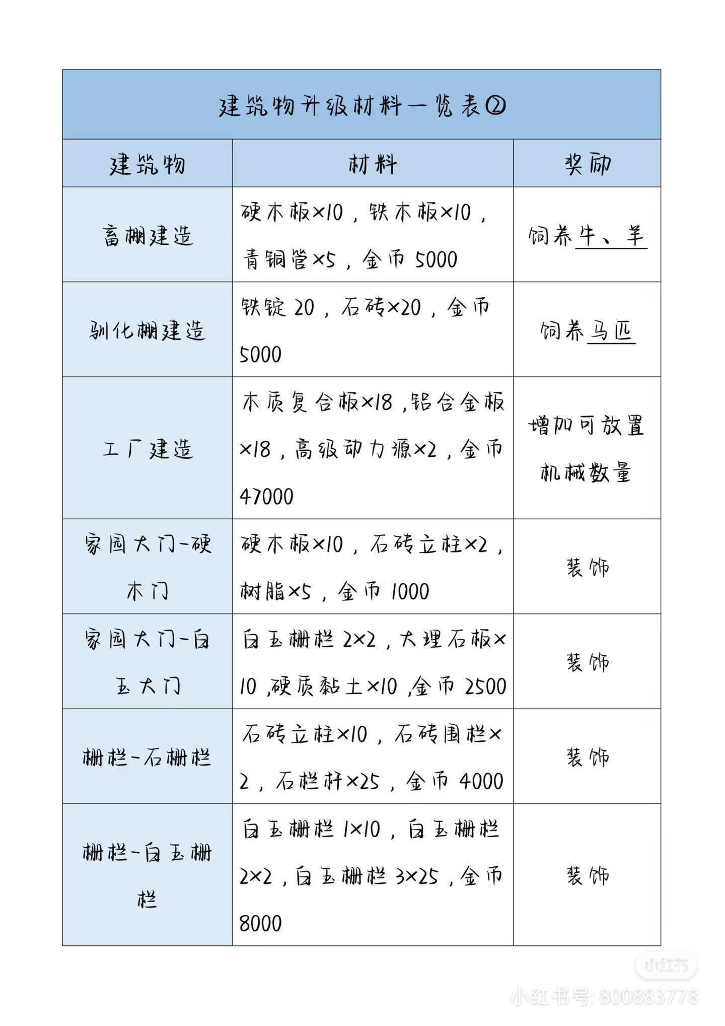 《波西亚时光》后期家园升级材料表
