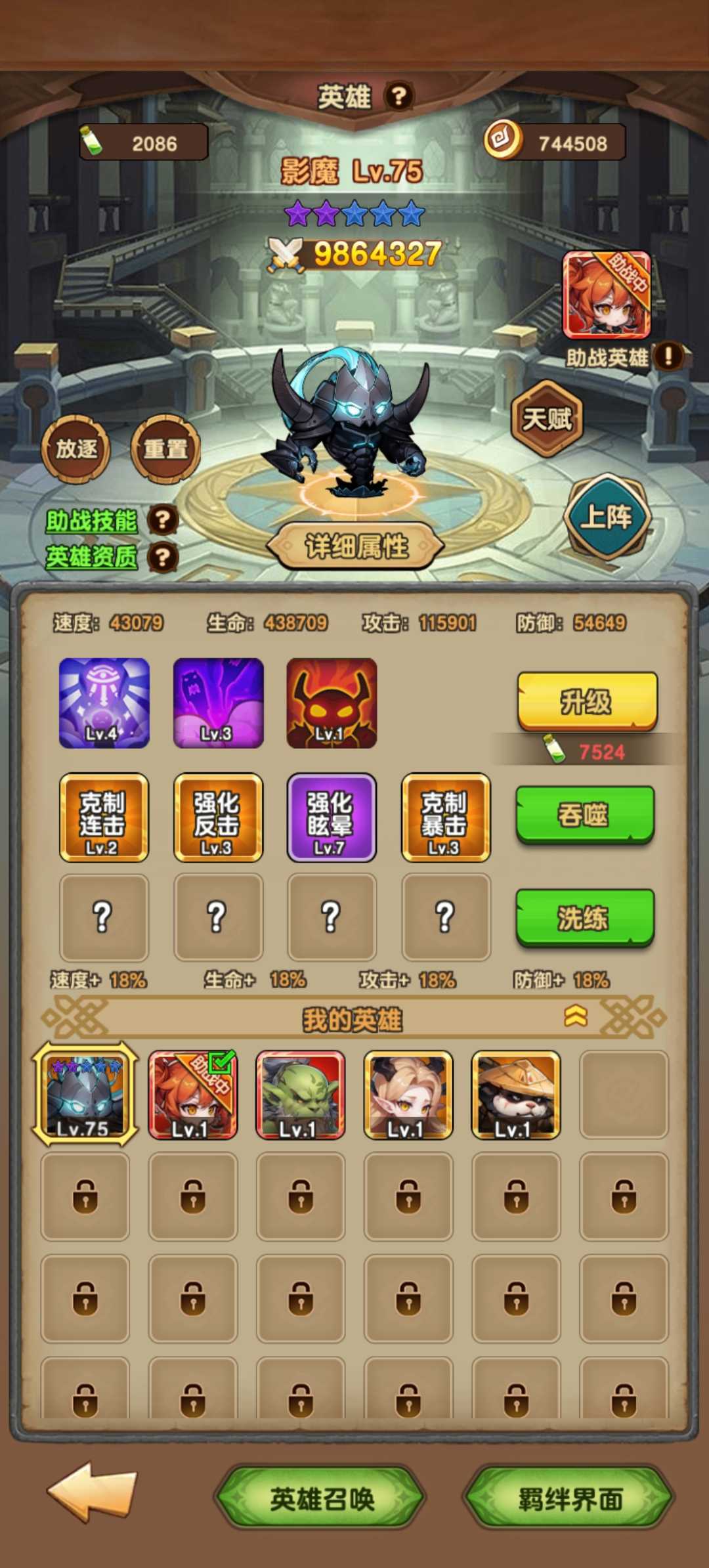 最近开了神器,神器一共有四个,带四种不同的技能,有防御的,有群攻的,有单秒的,而且随着神器的升级,还会解锁更多技能。