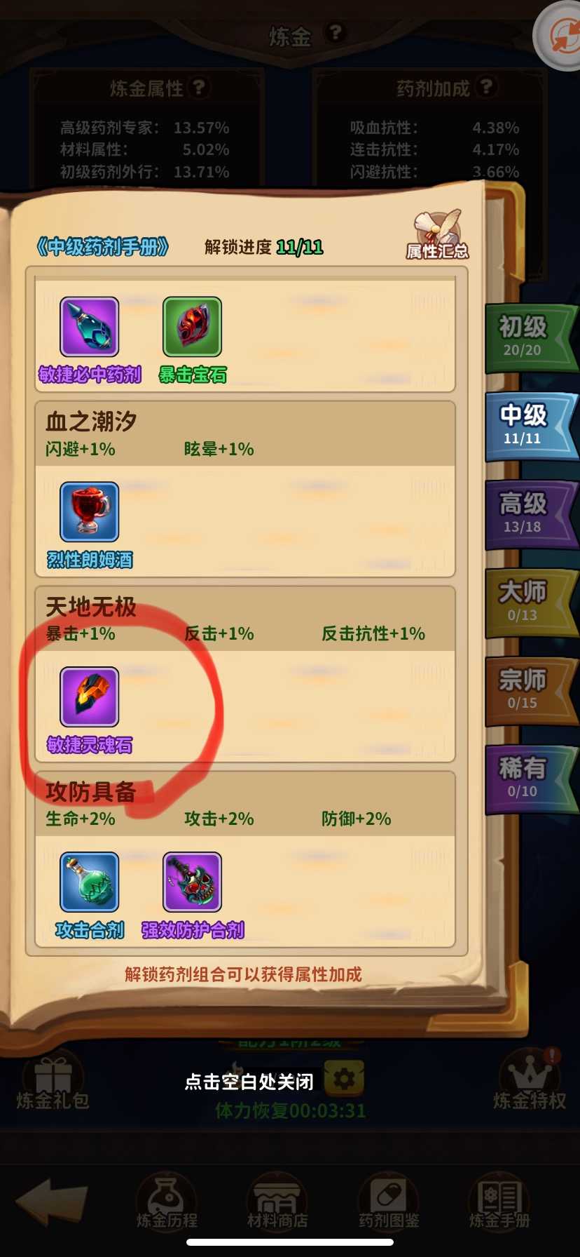 1、初级手册里的两个橙色药剂用上图圈出的绿色高级抑制和中度精炼,同时最好让炉子升到蓝色,棒子升到紫色。