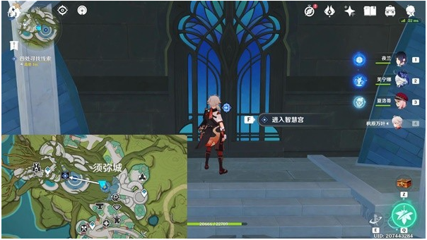 8、前往须弥城锚点,前往智慧宫,与纳西妲等对话1分钟。
