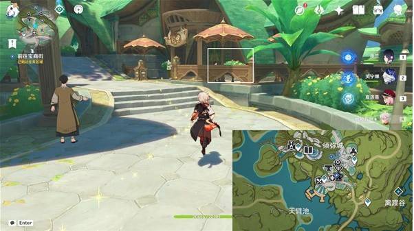 7、前往须弥城酒馆锚点,前往咖啡馆门口,与迪希雅等对话1分钟。