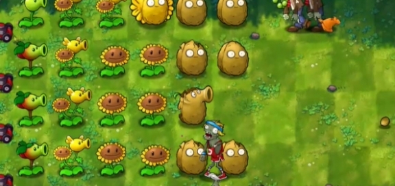 2、先在左侧种植一列向日葵,在右侧种植两个坚果。
