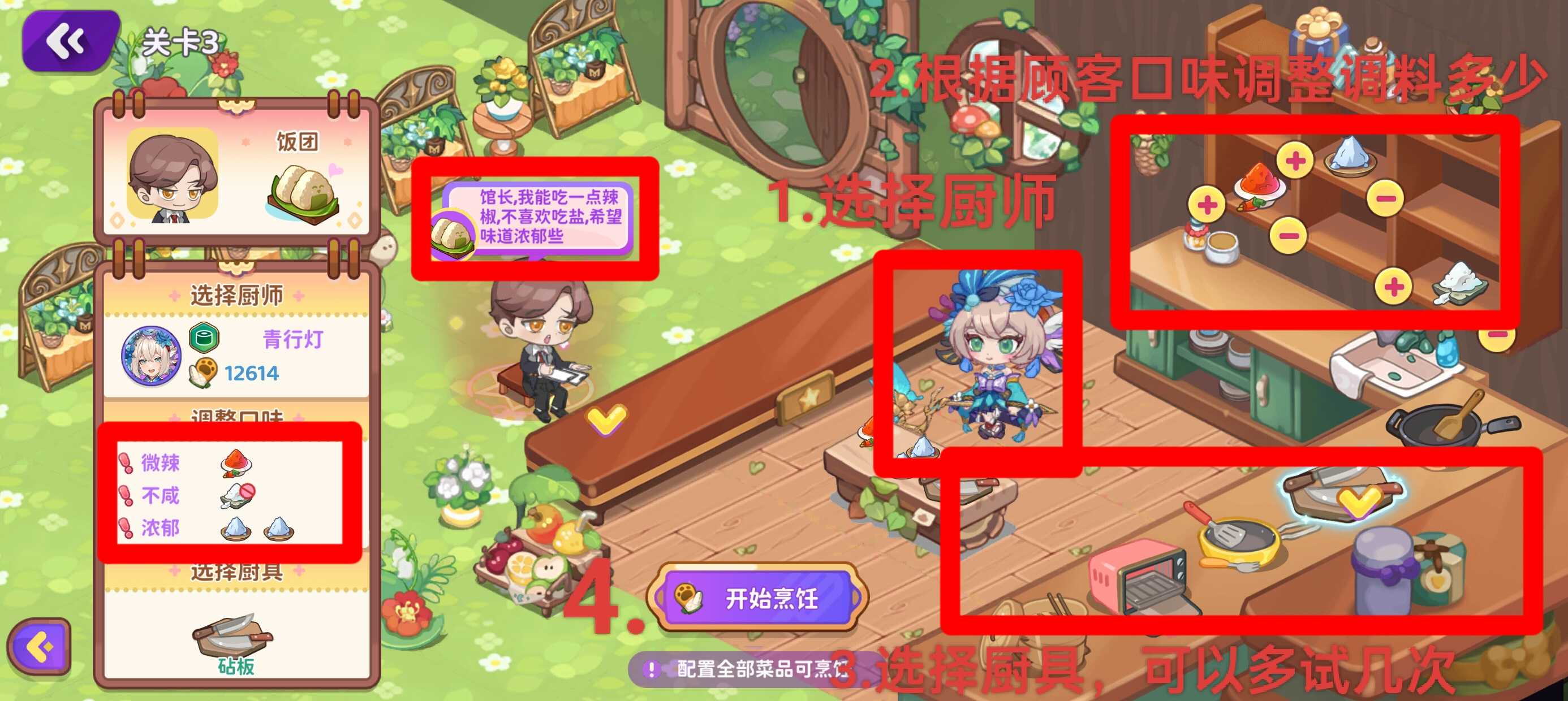 16.前期(25-之后)菜谱升级所需食材量较大,可以在打工商店2500币买5个超大食材包种植