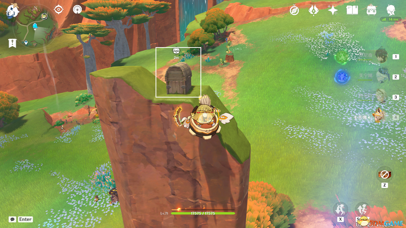 被掩藏起来的宝箱8:前往神像旁,切换卡齐娜,使用战技,攀爬至岩柱顶