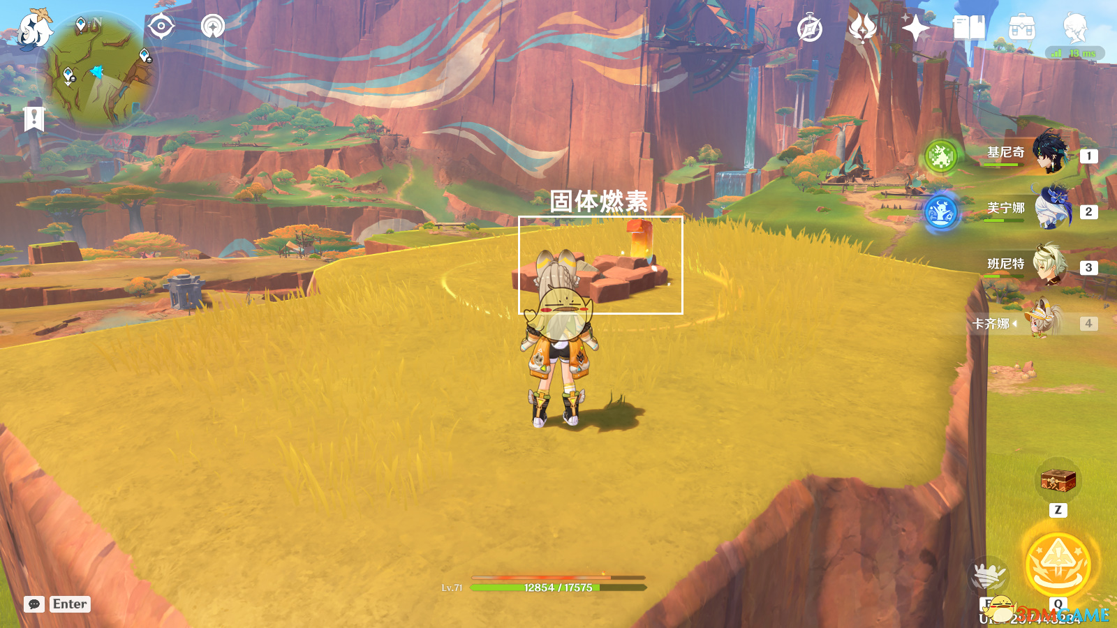 被掩藏起来的宝箱3:前往山脚,切换卡齐娜,使用战技,攻击固体燃素