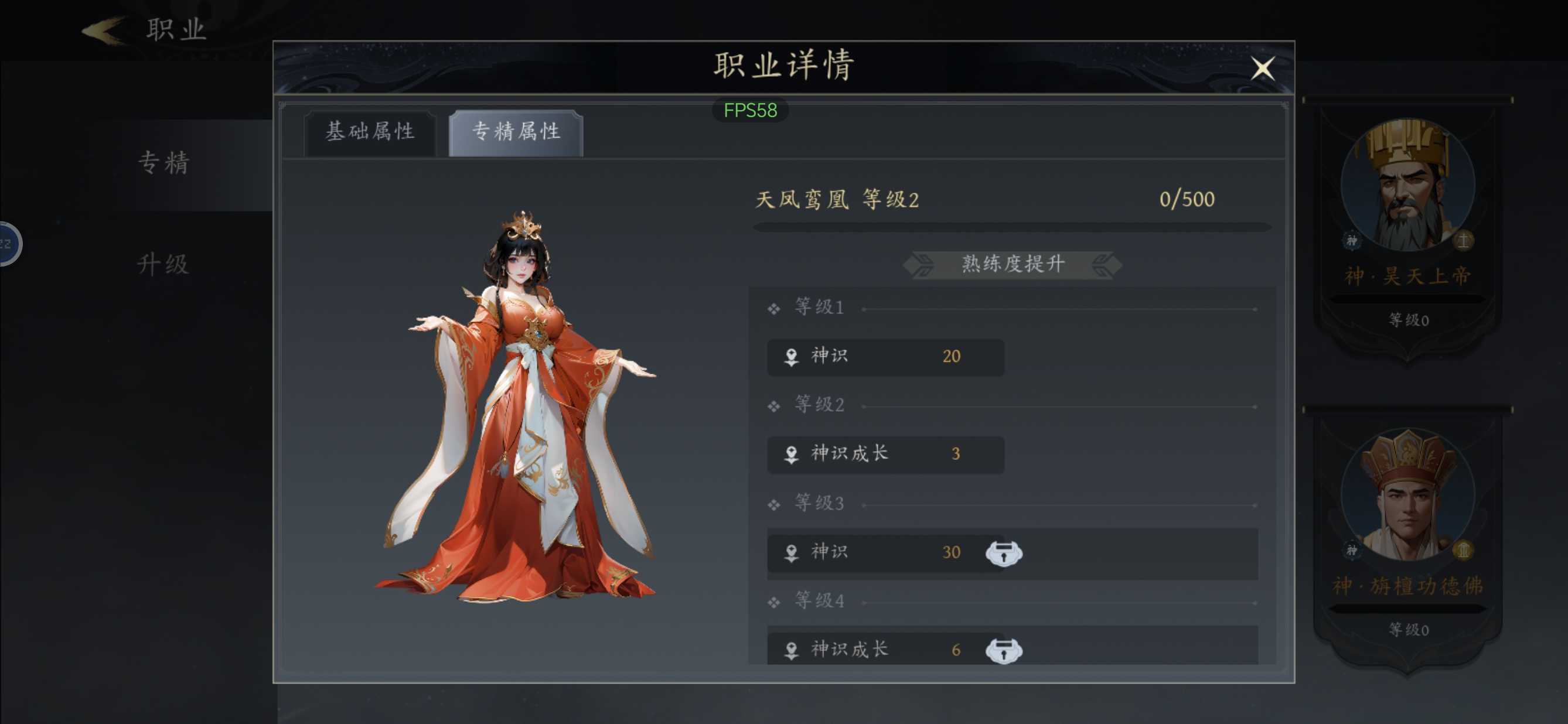 ①进游戏选神识职业,青皮,第三个用诸葛亮,最后一个用天女,注意最后一关要凑齐五行调和。