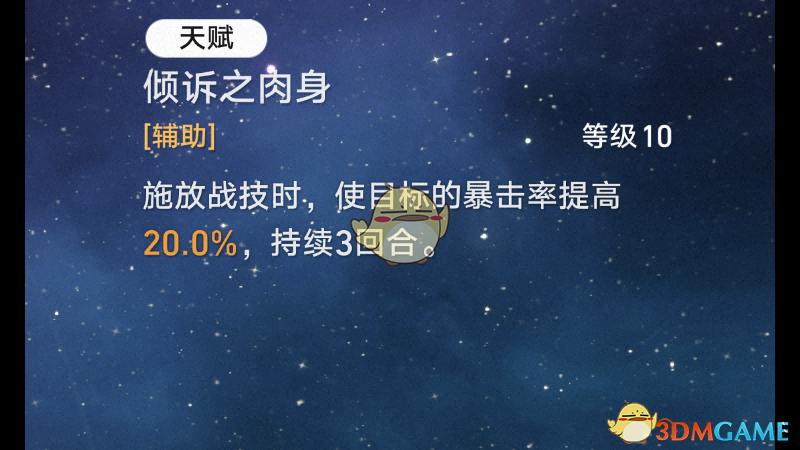天赋提供朴素但巨额的暴击词条,使得主C的面板非常好毕业。