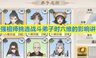 最强祖师挑选战斗弟子时六维的影响讲解(最强祖师爷好看吗)《最强祖师》游戏中弟子的六维属性包括潜力、资质、根骨、机缘、聪慧、魅力,每项属性对弟子的成长和战斗表现有着独特且重要的影响。以下是最强祖师挑选战斗弟子时六维的影响讲解。最强2025-11-27 -