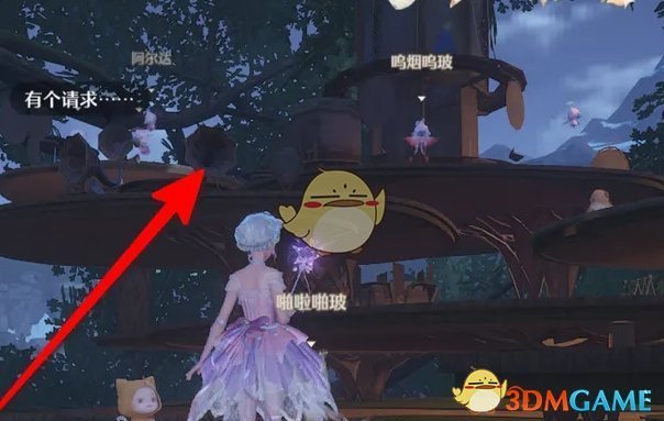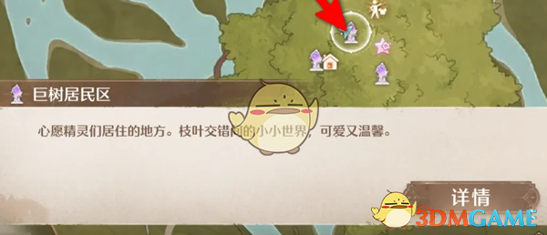 1、打开地图,选祈愿树林,传送到巨树居民区;