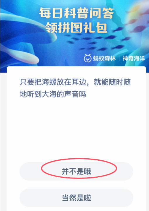 以上就是只要把海螺放在耳边,就能随时随地听到大海的声音吗?神奇海洋今天答案最新2025年3月10日分享,更多
