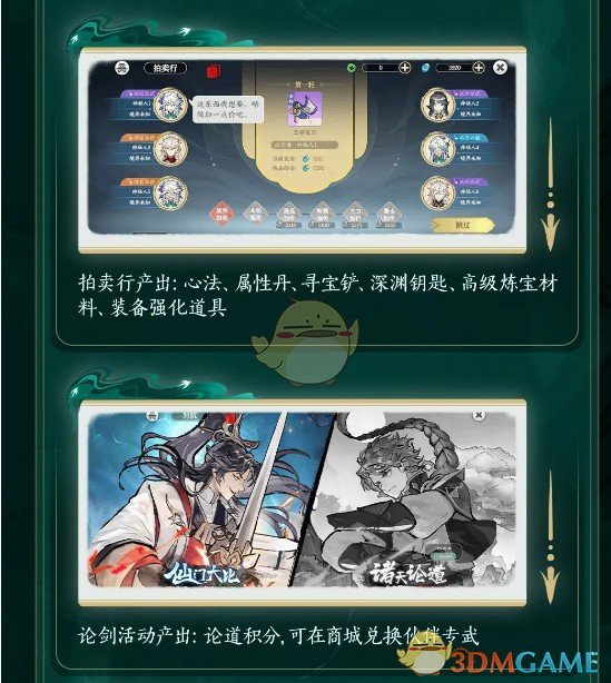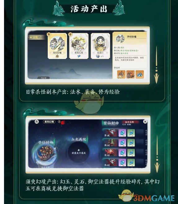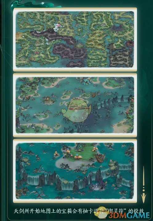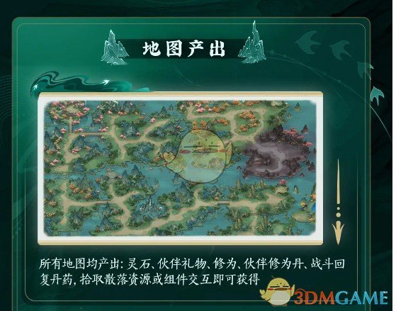 所有地图均产出:灵石、伙伴礼物、修为、伙伴修为丹、战斗回复丹药,拾取散落资源或组件交互即可获得,天剑州开始地图上的宝箱会有抽卡道具“契灵符”的投放。