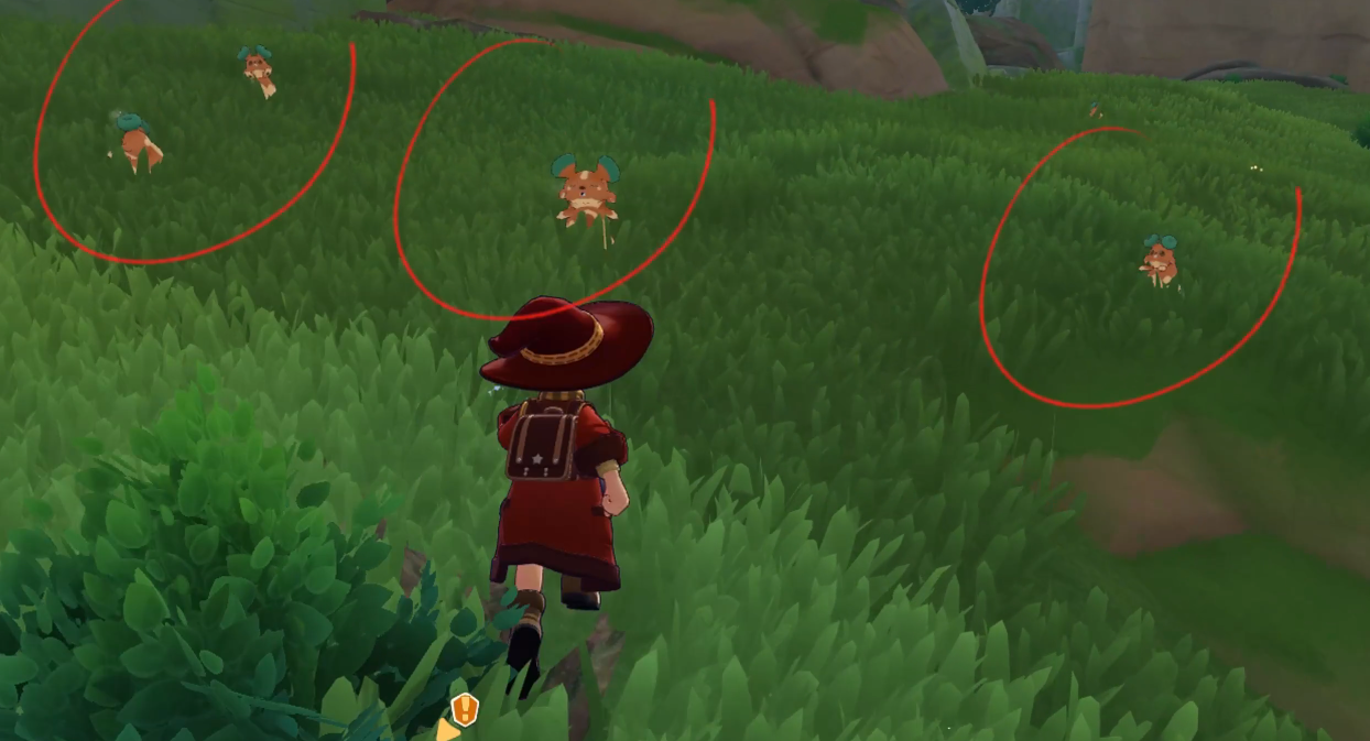 它这里的答案为一窝蜂,我们直接飞过它,往前方飞行,在一颗大树下面就能看到一只,同样捕捉后提交,最后只剩下一个南边的谜语者,它需要一只板板壳,所以可以直接往南边谜语者的左手边飞行。