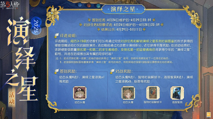 以上就是整理带来的第五人格2025演绎之星活动介绍,更多相关游戏攻略,请关注!