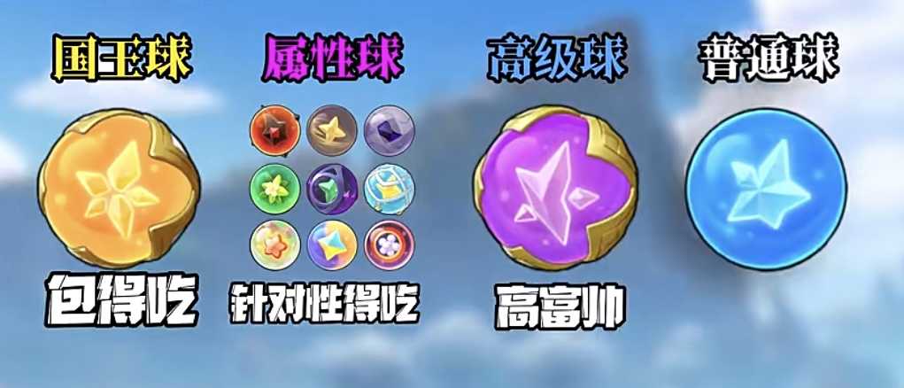 在这款游戏中,精灵球有非常多的类型,大概有十种,将它们分成了三种不同类别,分别是普通的咕噜球,还有高级的咕噜球,如果是新手玩家们前期最先接触到的,肯定就是普通的咕噜球,这种咕噜球也是大家最常用的,还有一种是属性的咕噜球,在游戏中一共有七种,大家也会接触到这种类型的咕噜球,只能够抓住特定属性的精灵,它的概率也会更大。