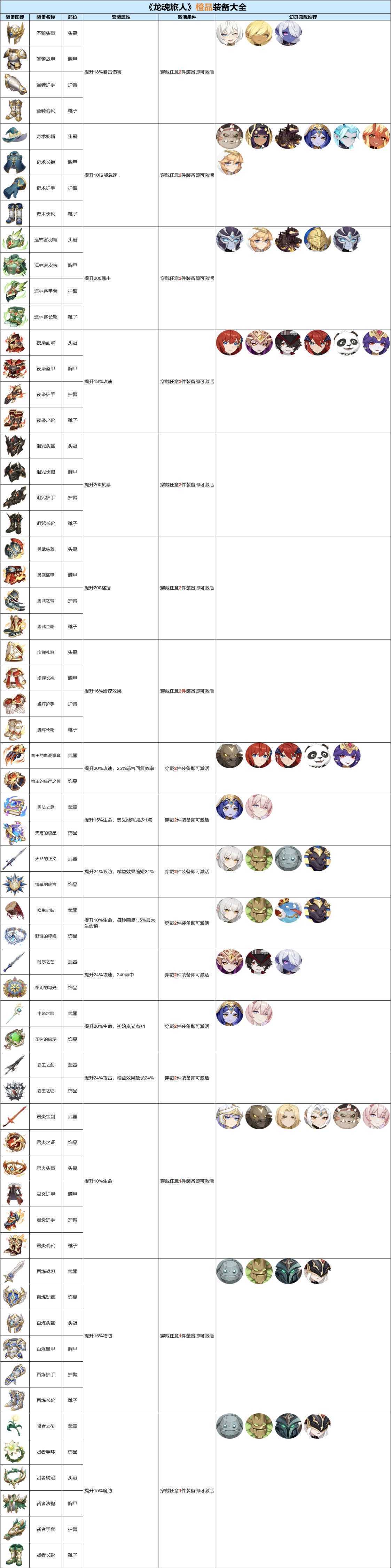 《龙魂旅人》橙品装备大全&幻灵佩戴推荐