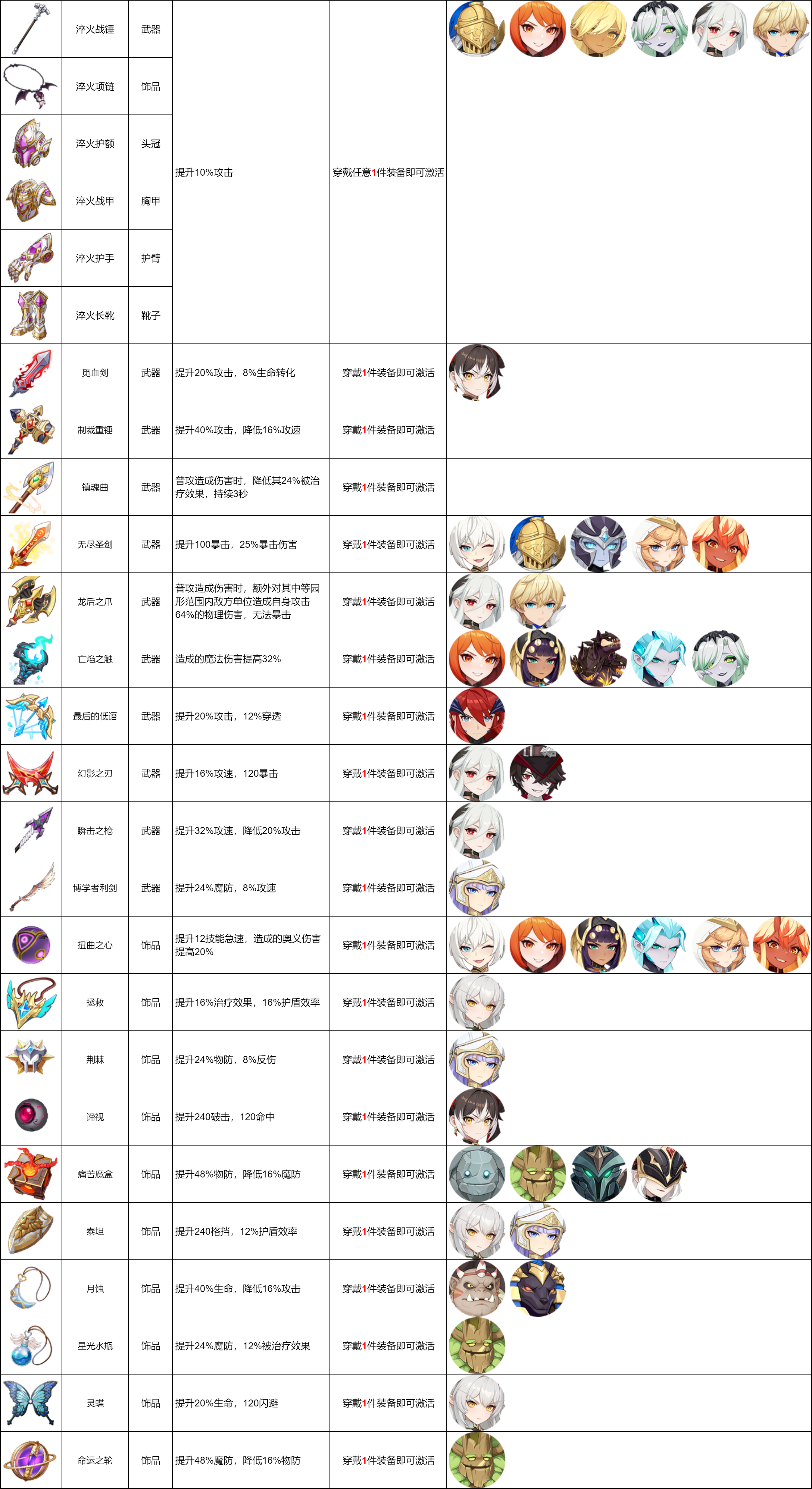 目前游戏中的橙品装备都在这里了,为了更好的推进关卡,去努力获取心仪的套装吧!