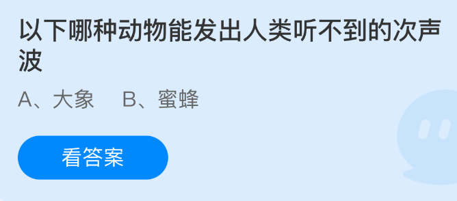 以上就是支付宝蚂蚁庄园2025年5月16日答案最新,以下哪种动物能发出人类听不到的次声波,更多精彩内容,请点击关注,小编将持续为您更新!