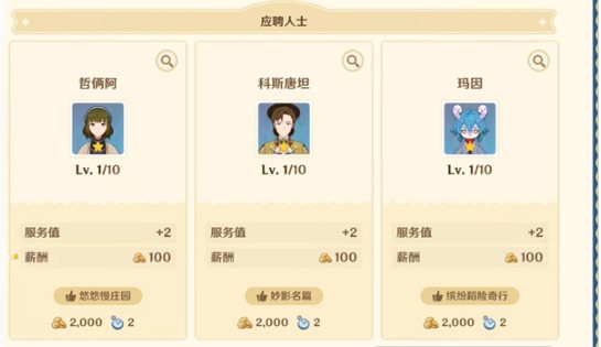 1、每个周期一开始找爱可菲吃料理,前期料理选增加营收的,有个整体营收善加料理是一个成长性料理,每次选择都会增加金币加成的百分比,没有增收料理就选普通的项目增收或者消费打折,员工免费升级的料理可以留到后续员工需要25升30级的时候在选择。