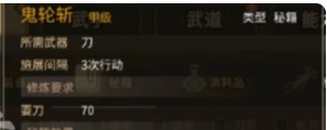 1、是第一本要给玩家们推荐的武学,作为一本甲级的武功秘籍,是天花板的存在,当大家获得了这门甲级刀法之后,就可以进行学习了。