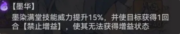而画师抢到一速后,除了释放增益技能,主要还是要给对方挂上【禁止增益】这个debuff,而这个效果来自于【天命】-【墨华】。
