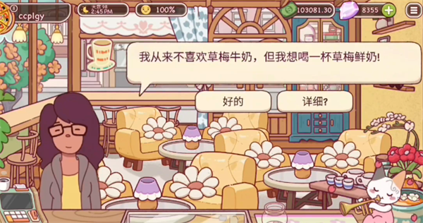 1、顾客进入店铺点单时会有一定的要求和提示,玩家要记住顾客的要求。